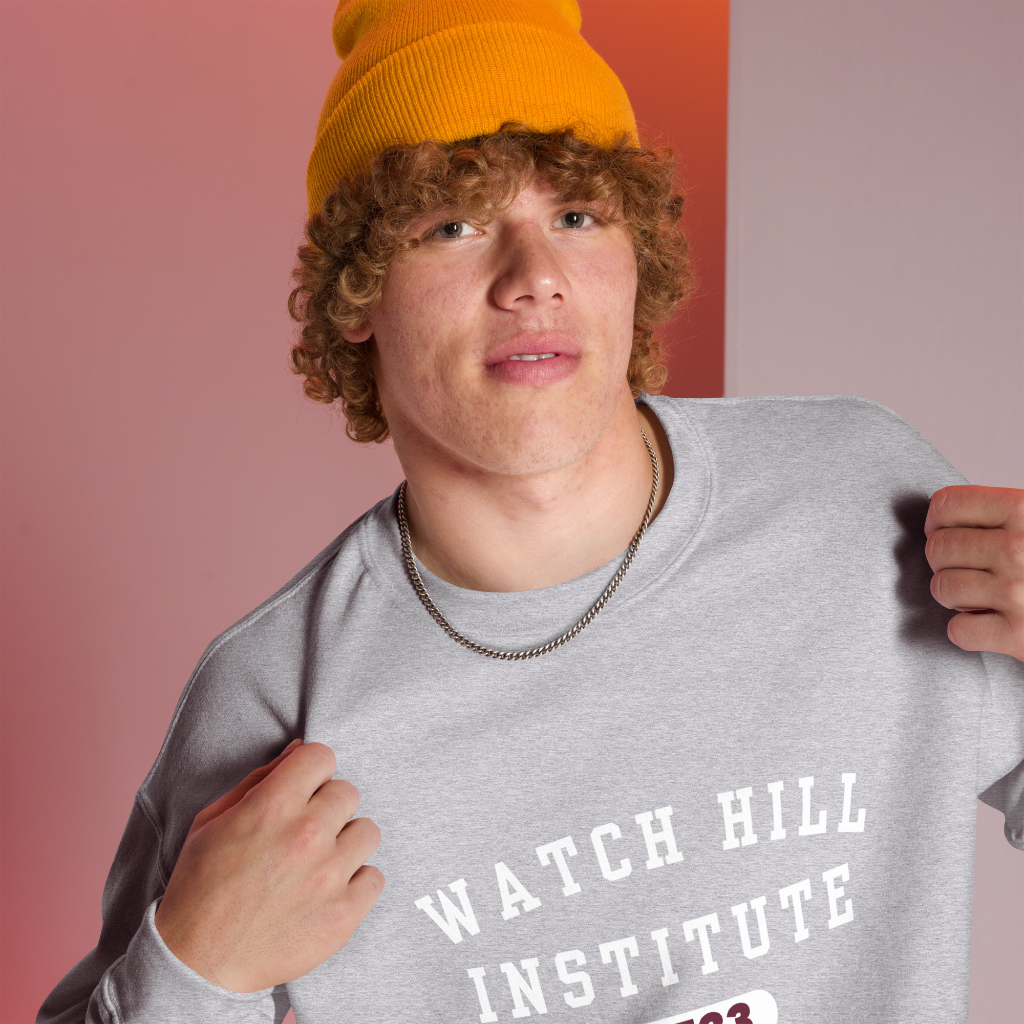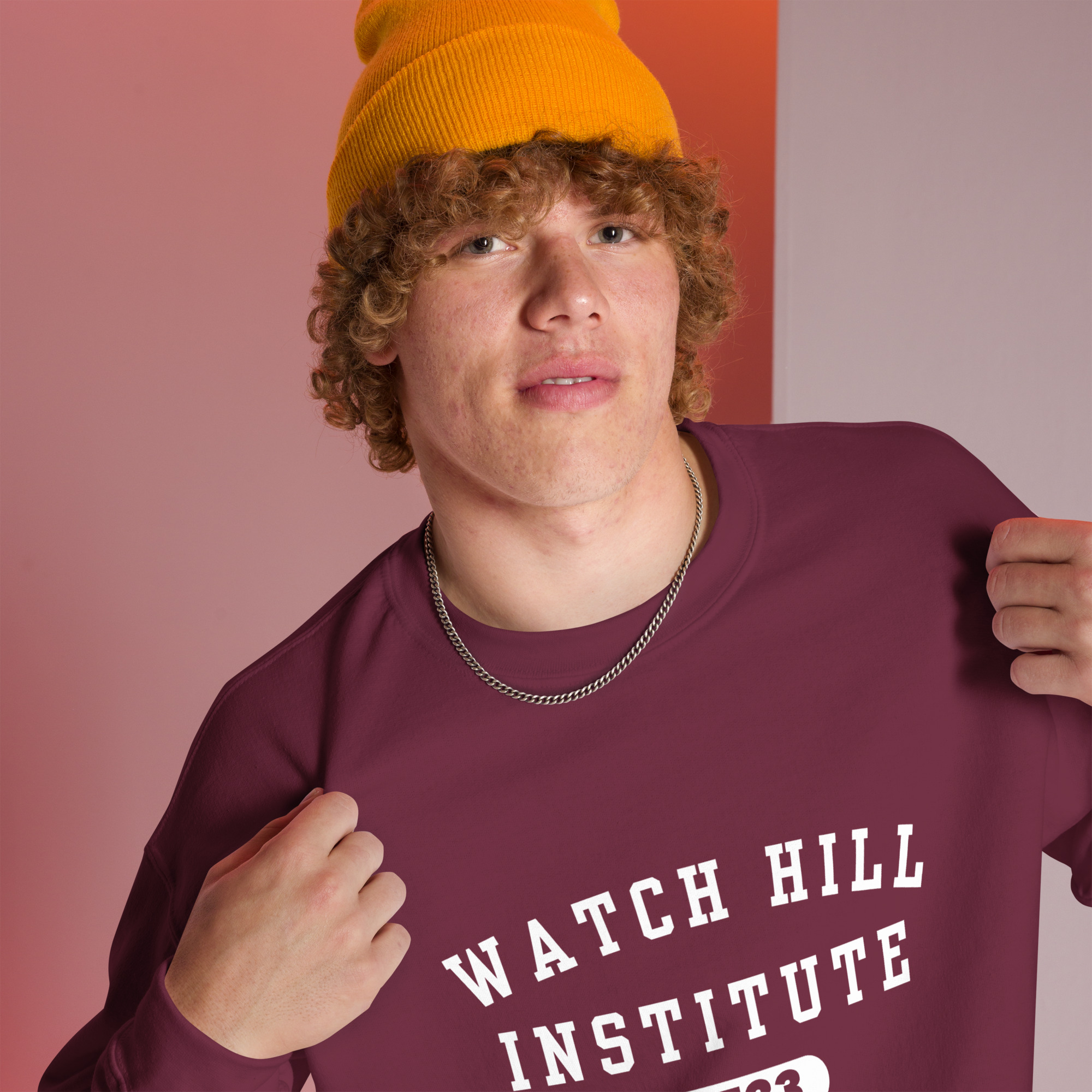This crewneck honors the “storied” bluffside school where lectures are often canceled due to gale-force gusts.